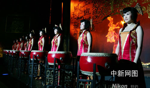 在開幕式晚會(huì)上,演員在表演鼓藝。作者 張?jiān)?br/>