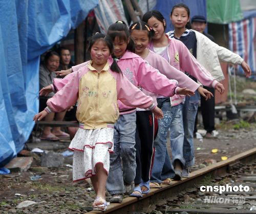 組圖:地震災(zāi)區(qū)孩子漸露童真笑臉(2)