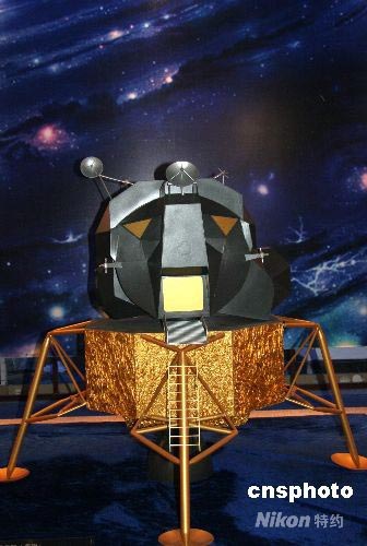 5月30日下午,以“奔月交響曲”為主題的“月球探測(cè)科普展”在中國(guó)科學(xué)技術(shù)館開幕,展覽為期兩個(gè)月,向公眾免費(fèi)開放。圖為展出的美國(guó)“阿波羅”十一號(hào)登月艙模型。中新社發(fā) 孫自法 攝