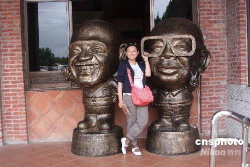縣府觀光營銷處特地制作的大型Q版蔣大頭及蔣小國模型吸引游客拍照。中新社發(fā) 耿軍 攝