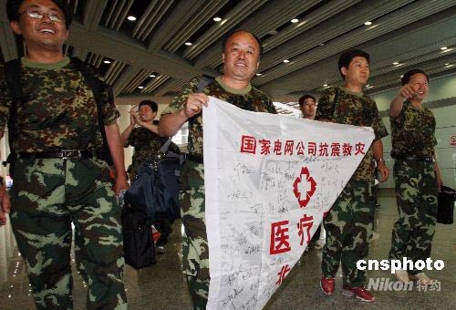 北京抗震救援醫(yī)療隊返京受熱烈歡迎