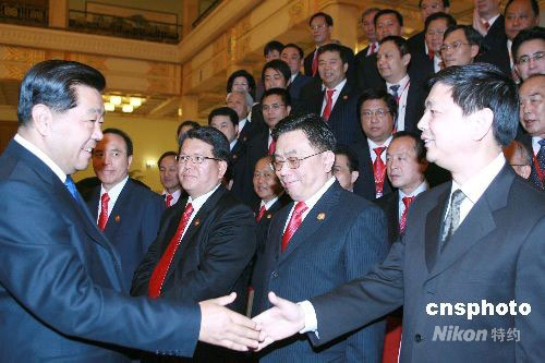 6月2日,全國(guó)臺(tái)灣同胞投資企業(yè)聯(lián)誼會(huì)(臺(tái)企聯(lián))一屆二次會(huì)議在北京人民大會(huì)堂舉行,中共中央政治局常委、全國(guó)政協(xié)主席賈慶林出席會(huì)議并與參會(huì)代表合影留念。中新社發(fā) 廖文靜 攝