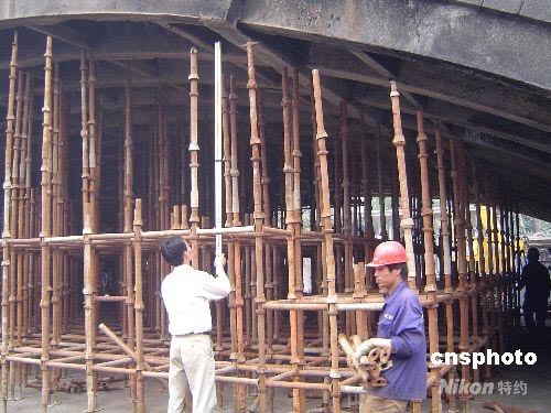 因小商品攤位發(fā)生火災(zāi)導(dǎo)致南京長江大橋南引橋第一橋孔受損嚴(yán)重,有關(guān)方面正組織力量抓緊搶修加固,工程完成需時二個多月。中新社發(fā) 王國安 攝