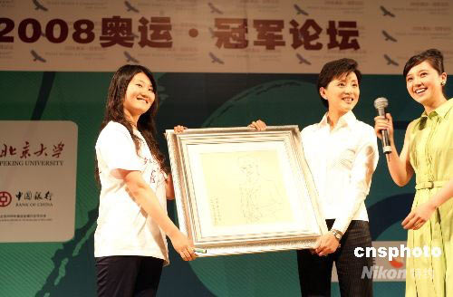 圖:楊瀾接受北京大學(xué)贈(zèng)送的“楊瀾畫(huà)像”