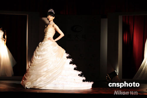 周大!拔艚.飾金”珠寶藝術(shù)展覽近日在香港文化博物館劇院舉辦了隆重的揭幕典禮。代言人呂燕與樂基兒、林嘉綺三位中港臺頂尖名模,身著奧斯卡美術(shù)指導獎得主葉錦添先生設計的配套婚紗,傾情演繹了周大福最新婚嫁珠寶作品。葉錦添先生從各自獨特的角度,通過婚嫁首飾與婚紗這兩種重要的婚禮元素,闡述著他們對于現(xiàn)代女性復雜而多變的情感世界的理解與領(lǐng)悟,表達出新人對美麗與幸福的無限憧憬與期冀。 中新社發(fā) 楊影懿 攝