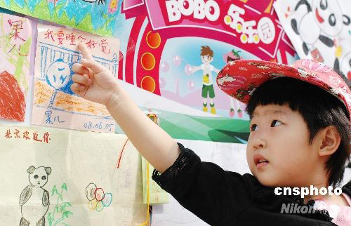 圖:小朋友用圖畫(huà)祝福奧運(yùn)熊貓寶寶