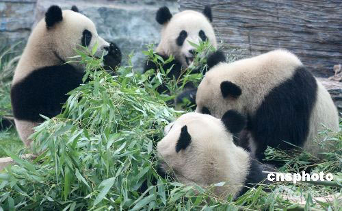 2008年6月5日,北京動物園熊貓新館正式開放。從四川臥龍來到北京的八只熊貓當(dāng)日在新館正式亮相,吸引了許多市民前來觀看。中新社發(fā) 吳芒子 攝