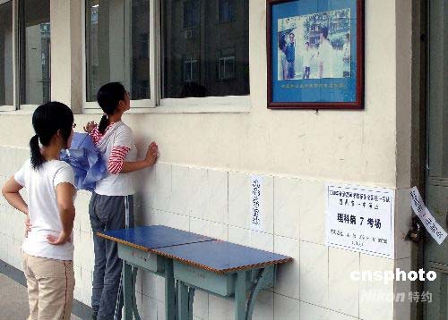 2008年6月6日,全國各地高考考場布置妥當(dāng),考生和家長紛紛到考場“踩點(diǎn)”,熟悉赴考路線、考場環(huán)境和考試位置,提前做好高考準(zhǔn)備。2008年高考(普通高等學(xué)校招生全國統(tǒng)一考試)將于6月7日拉開帷幕。