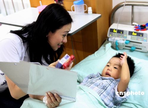 圖為香港華光功德會大使翁虹小姐為小朋友帶來節(jié)日的問候。中新社發(fā) 黃榮 攝