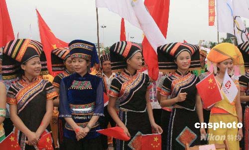 圖:壯族美女喜迎奧運(yùn)圣火