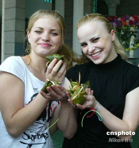 圖:端午節(jié)外國(guó)賓客學(xué)包中國(guó)粽子(2)