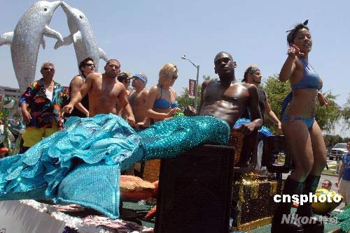 當(dāng)?shù)貢r(shí)間六月八日(周日),洛杉磯數(shù)千名同性戀者及其支持者在西好萊塢的圣塔莫妮卡大道上參加第三十八屆“同性戀自豪大游行”,沿途有十幾萬(wàn)民眾觀看游行。美國(guó)加州高等法院上個(gè)月通過(guò)了同性戀婚姻合法化的最終決定,從而使加州成為美國(guó)第二個(gè)允許同性戀伴侶結(jié)婚的州。中新社發(fā) 張煒 攝