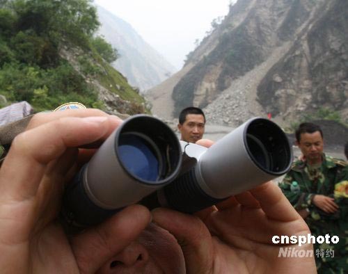 參加搜救的四川省軍區(qū)部隊(duì)在被稱(chēng)為“死亡谷”的地震中心,繼續(xù)觀(guān)察山高林密非常險(xiǎn)峻的失事地點(diǎn)。中新社發(fā) 賈國(guó)榮 攝