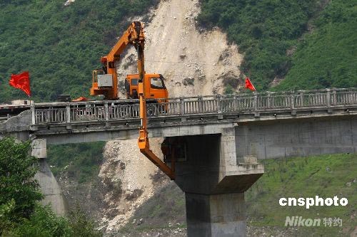 勘測人員冒酷暑勘測四川震區(qū)橋梁受損情況