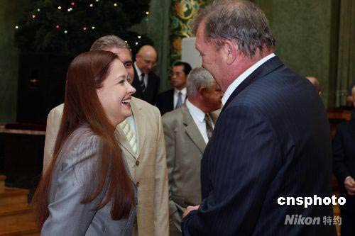 6月10日,中國駐俄大使劉古昌在使館為俄方赴華抗震救災(zāi)醫(yī)療隊(duì)舉行答謝招待會(huì)。圖為俄緊急救災(zāi)部部長紹伊古的女兒尤利婭和同事在活動(dòng)現(xiàn)場(chǎng)。尤利婭是俄緊急情況部緊急心理救助中心主任、心理學(xué)副博士,四川發(fā)生大地震后,她被父親親自派往地震災(zāi)區(qū)進(jìn)行救援。中新社發(fā) 田冰 攝