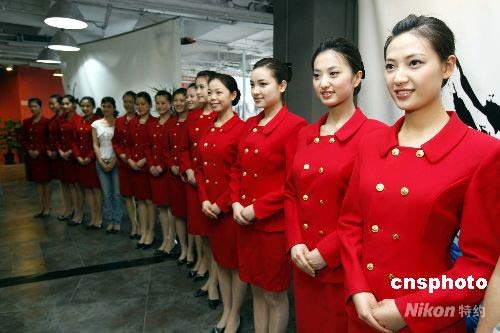 圖:15位準(zhǔn)空姐北京演練奧運頒獎儀式