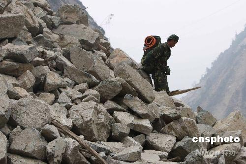 增援官兵趕赴失事直升機(jī)警民遺體營(yíng)地。中新社發(fā) 賈國(guó)榮 攝