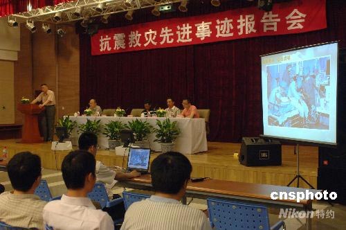 圖為僑辦系統(tǒng)抗震救災(zāi)先進(jìn)事跡報(bào)告會(huì)的現(xiàn)場。中新社發(fā) 鄒憲 攝