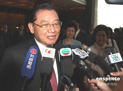 6月14日8時25分許,海基會董事長江丙坤離京返臺前在下榻的北京金融街洲際酒店前回答記者提問。中新社發(fā) 趙振清 攝