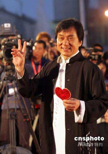 香港著名影星成龍?zhí)ど蠍坌拇蟮。中新社發(fā) 潘索菲 攝