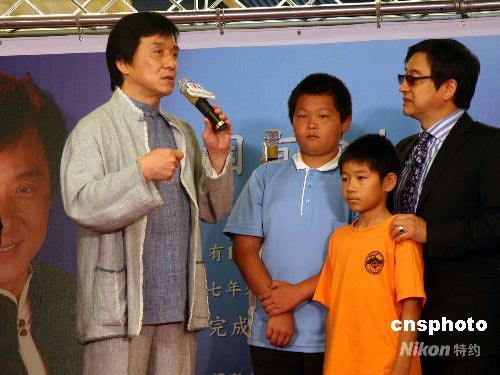 圖:成龍亮相臺北為貧苦學(xué)童募集善款