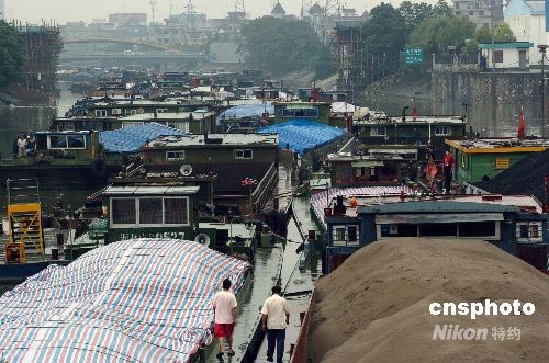 6月18日,300多艘駁殼貨船在京杭大運(yùn)河杭州段滯留。據(jù)了解,從6月17日開始,浙江省迎來了入梅來的第三次強(qiáng)降雨。浙江省防汛指揮部辦已啟動防汛Ⅲ級應(yīng)急響應(yīng)。強(qiáng)降雨導(dǎo)致錢塘江流速過快,為確保京杭大運(yùn)河船只行船安全,京杭大運(yùn)河杭州段通往錢塘江的杭州三堡船閘于于當(dāng)日關(guān)閉,300多艘船舶被堵滯留。中新社發(fā) 施健學(xué) 攝