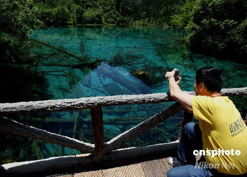 6月18日,一位香港心理教育志愿者完成災(zāi)區(qū)服務(wù)任務(wù)后,路過震后九寨溝,拍攝分外寧靜的美景。四川汶川大地震絲毫未損四百公里外的九寨溝,風(fēng)景區(qū)旅游設(shè)施完善如初,六月底前將部分恢復(fù)旅行社組團旅游,游客主要通過航空和甘肅省以及四川省的繞行公路進(jìn)出。地震以來,這里每天都接待一些散客。中新社發(fā) 賈國榮 攝