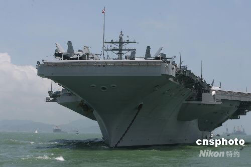 圖:美國核動力航空母艦“里根號”訪港