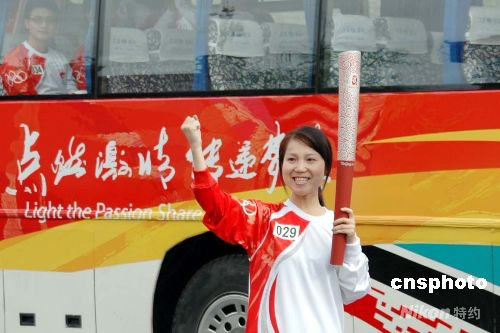 圖:火炬手秦莉手持火炬興奮異常