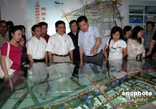6月24日,臺北市長郝龍斌專程考察上海虹橋綜合交通樞紐工程,意在建立臺北松山機場至上海虹橋機場新直航點,共同形成“兩小時經(jīng)濟圈”。中新社發(fā) 潘索菲 攝