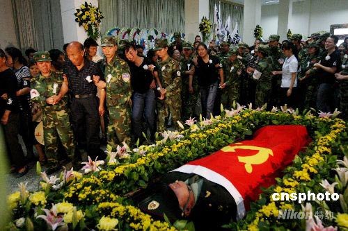 6月24日,被濟(jì)南軍區(qū)某集團(tuán)軍評為革命烈士并被追記一等功的濟(jì)南軍區(qū)某紅軍師士官武文斌烈士的遺體在四川都江堰市殯儀館火化。上午9時(shí)在都江堰市殯儀館舉行了隆重的向武文斌烈士遺體告別儀式,武文斌生前所在部隊(duì)的官兵和社會各界的近萬人參加了向遺體告別儀式。中新社發(fā) 曾憲平 攝