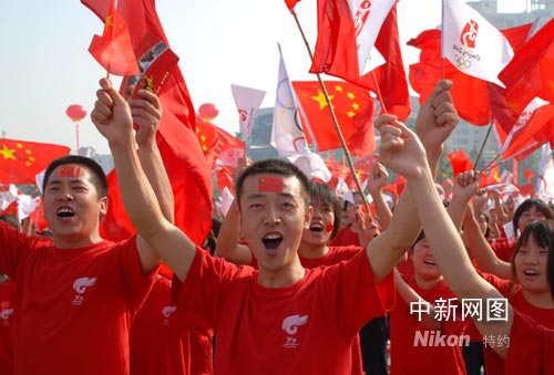 圖為沿途觀看的群眾,高喊“北京加油!中國加油!”。張雷杰 攝