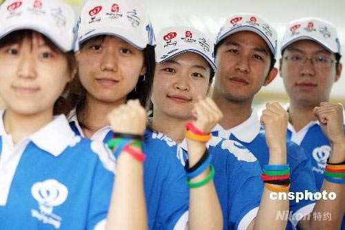 北京奧運(yùn)城市志愿者換新裝迎接上崗服務(wù)(2)