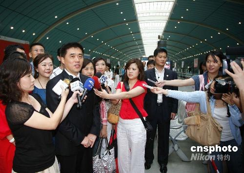 6月27日下午,臺(tái)北市長郝龍斌結(jié)束在上海的訪問,搭乘磁浮列車赴浦東國際機(jī)場返臺(tái)。郝龍斌向記者表示,此次上海之行很好,相信臺(tái)北與上海一定會(huì)雙贏。中新社發(fā) 潘索菲 攝