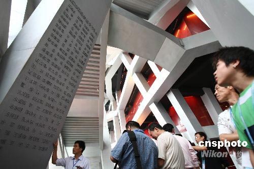 6月28日,北京奧運會主體育場——國家體育場(“鳥巢”)正式落成,建設者的名字被刻在國家體育場落成紀念柱的背面。中新社發(fā) 盛佳鵬 攝