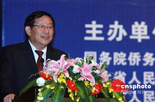 6月28日,“2008年華僑華人創(chuàng)業(yè)發(fā)展洽談會(huì)”在湖北省武漢市開(kāi)幕,全國(guó)政協(xié)副主席、致公黨中央主席、中國(guó)科技部部長(zhǎng)萬(wàn)鋼在開(kāi)幕式上作主旨講話。中新社發(fā) 廖文靜 攝