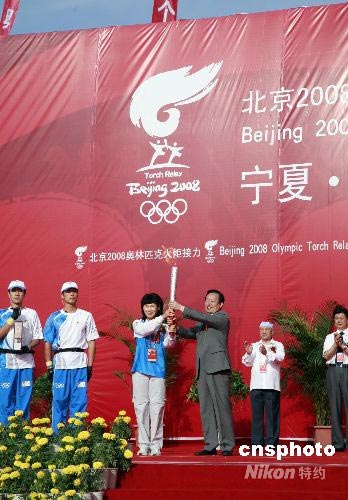 圖:奧運火炬在寧夏中衛(wèi)市傳遞