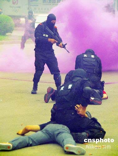 圖:山東舉辦“泰山2008”反恐演練(2)