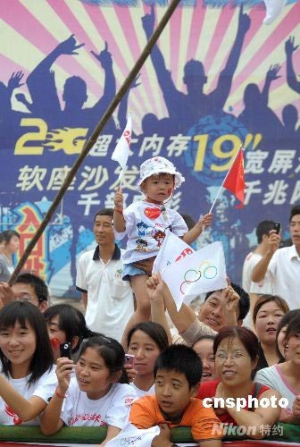 7月3日,奧運(yùn)火炬在陜西楊凌傳遞,楊凌民眾熱情為奧運(yùn)加油。中新社發(fā) 廖攀 攝