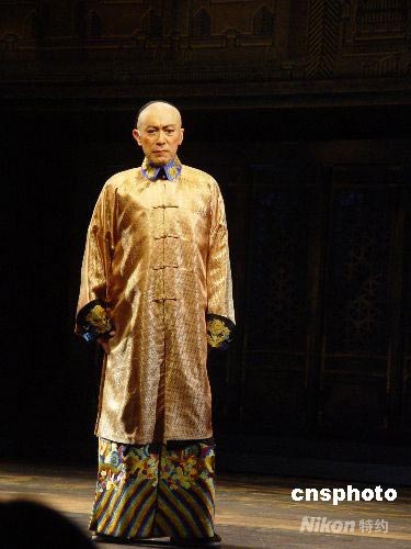 圖為在話劇中扮演光緒皇帝的香港著名舞臺(tái)劇導(dǎo)演毛俊輝。他上次登臺(tái)演出的就是1998年的《德齡與慈禧》,這次是十年后再度出演劇中“光緒皇帝”。中新社發(fā) 應(yīng)妮 攝