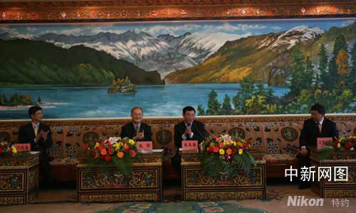 圖為西藏自治區(qū)黨委書記張慶黎、自治區(qū)黨委常委、秘書長(zhǎng)公保扎西會(huì)見趙陽、劉北憲一行。賈長(zhǎng)飛 攝影