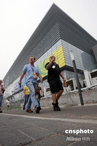 圖:記者走過(guò)北京奧運(yùn)會(huì)國(guó)際廣播中心