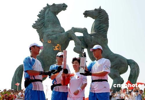 圖:奧運(yùn)火炬在鄂爾多斯的傳遞結(jié)束