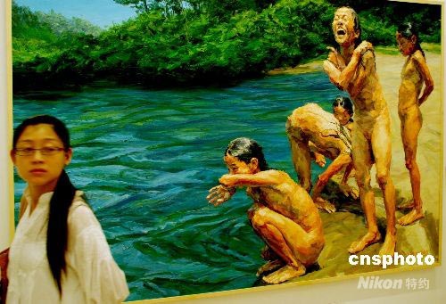 7月9日,以“色彩與奧林匹克”為主題的2008·第三屆中國(guó)北京國(guó)際美術(shù)雙年展吸引了眾多觀眾,來(lái) 自81個(gè)國(guó)家的747件當(dāng)代繪畫(huà)和雕塑作品集中展出,其中很多作品都是世界各國(guó)藝術(shù)家專(zhuān)為北京奧運(yùn)會(huì)創(chuàng)作的。中新社發(fā) 楊慧峰 攝