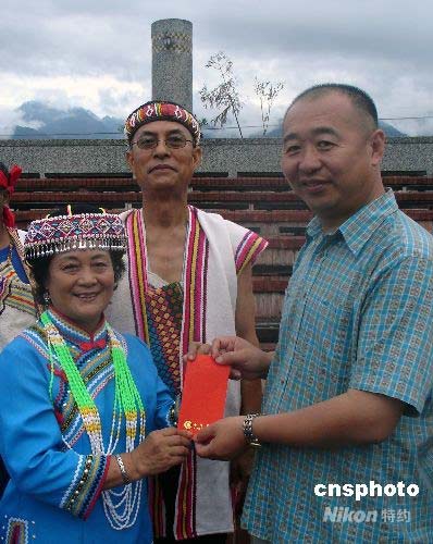 圖:大陸首發(fā)團向臺灣少數(shù)民族同胞贈紅包