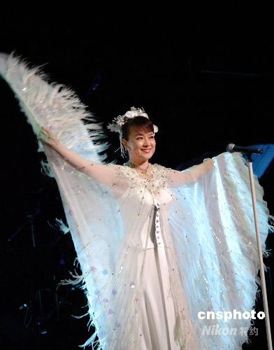 圖為著名歌星翁倩玉在賑災(zāi)義演上演唱。中新社發(fā) 朱沿華 攝