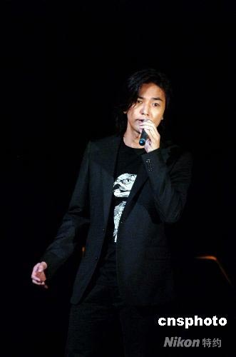 圖為著名歌星鄭伊健在義演現(xiàn)場演唱《風(fēng)云》。中新社發(fā) 朱沿華 攝