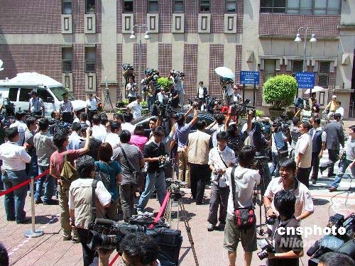 七月二十一日,臺(tái)北地方法院開(kāi)庭審理臺(tái)灣海軍前軍官雷學(xué)明控告陳水扁等人誹謗案。這是陳水扁卸任臺(tái)灣地區(qū)領(lǐng)導(dǎo)人后首度至法院出庭,臺(tái)灣媒體對(duì)此高度關(guān)注。圖為庭審結(jié)束后,陳水扁離開(kāi)時(shí),媒體仍鍥而不舍圍堵其坐車(chē)。中新社發(fā) 徐長(zhǎng)安 攝