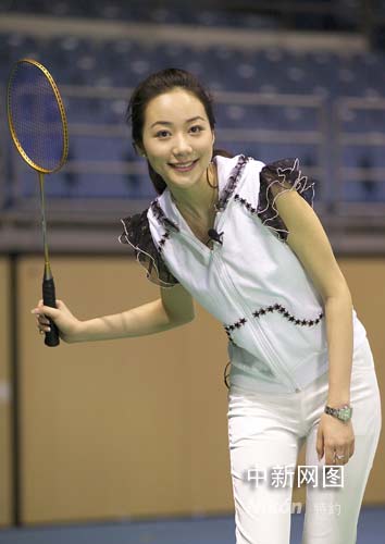 圖:影視紅星韓雪奧運(yùn)羽毛球館激情揮拍