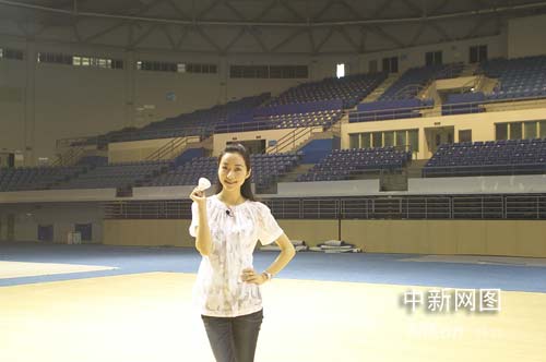 圖:影視紅星韓雪奧運(yùn)羽毛球館激情揮拍
